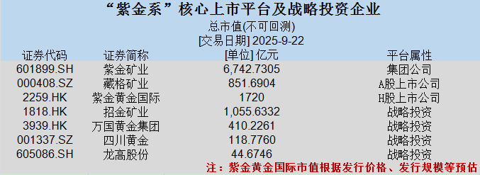 接下来,随着9月29日在港股的正式挂牌交易,公司也将形成以紫金矿业A股为主,藏格矿业A股、紫金黄金国际H股为辅,市值总额逼近1万亿元人民币的“紫金系”资本矩阵。