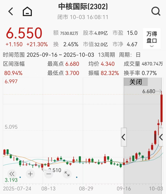值得注意的是,中核国际自9月16日以来涨幅已近81%。据央视新闻报道,当地时间9月15日,国际原子能机构召开第69届大会,连续第五年上调了对核电扩张的预测,预计到2050年全球核电运营容量将增加一倍以上,达到2024年水平的2.6倍。
