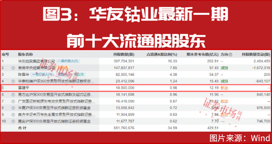 与此同时,章建平还新进重仓了有色股华友钴业,并以12.19亿元的持仓一跃成为公司的第五大流通股股东(见图3)。