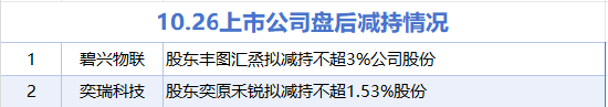 10月26日增减持汇总:暂无增持 碧兴物联等2股减持(表)