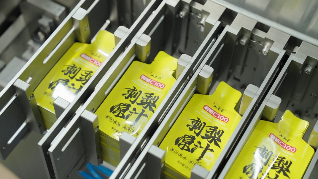 “山王果”是贵州一家经营刺梨原汁的本地品牌,今年以来伴随贵州旅游热,被称为“维C之王”的贵州特色水果刺梨也火遍全国。2020年,品牌入驻天猫,2023年底推出了一款30-50毫升超小规格包装的刺梨原汁,一下子就成为了爆款。今年双11前夕,品牌又推出了一款搭配百香果的新品,专门设计了条形包装。“一条搭配一瓶的矿泉水,年轻人不喜欢喝白开水,这款新品在口味上做了调和,同时又保留了刺梨中的维C和其它营养成分,天猫双11卖得非常好。”“山王果”电商部负责人表示。
