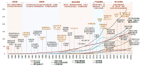 实体经济转型升级需求叠加政策引导推动,直接融资生态持续完善。1)政策层面,“十五五”规划明确“推动高质量发展”的经济社会发展主题,强调通过高水平科技自立自强与“新质生产力”的培育,驱动经济结构转型升级。而资本市场作为现代金融体系的核心枢纽,在此过程中将充分发挥其资源配置功能。当前政策引导着力提升资本市场制度的包容性与适应性,不断深化多层次市场建设、壮大私募股权及创投基金、稳步推进REITs与资产证券化等。2)市场层面,以科创板为代表的注册制改革、多层次资本市场体系的不断完善、叠加新经济企业占比提升带动直接融资需求增长,截至2025年10月,A股上市公司数量5,452家、较2018年底增长逾50%,企业主体债券年融资额约20万亿元、近10年复合增速达14%。