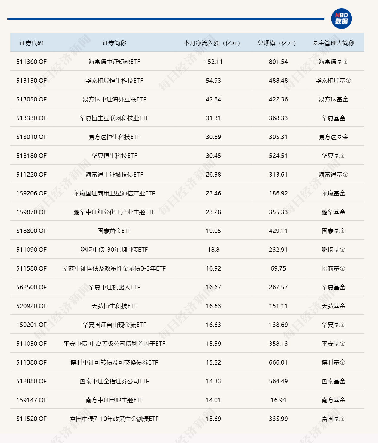 截至2月13日,本月资金净流入额居前20的ETF名单如下: