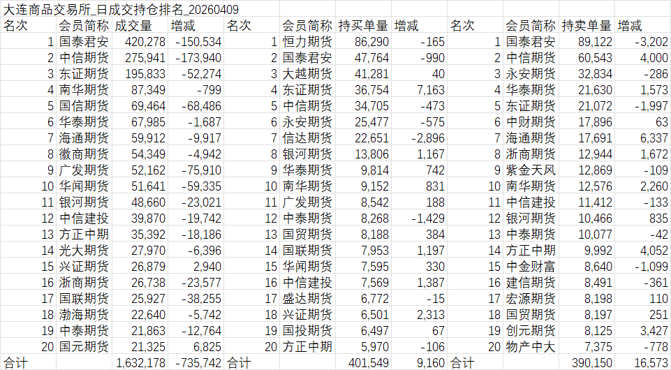 •期货市场:截至 2026 年 4 月 9 日,PVC 期货 V2605 合约下午收盘价5093 元 / 吨,较前一交易日结算价下跌 3.06%,当日结算价5149 元 / 吨,收盘持仓量56.60 万手(较上一交易日增加 17584 手),当日成交量110.61 万手。