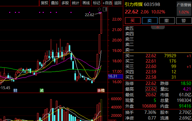 AI应用方向盘初走高,引力传媒、东方明珠涨停,浙文互联、蓝色光标、迅游科技、易点天下等涨幅居前。